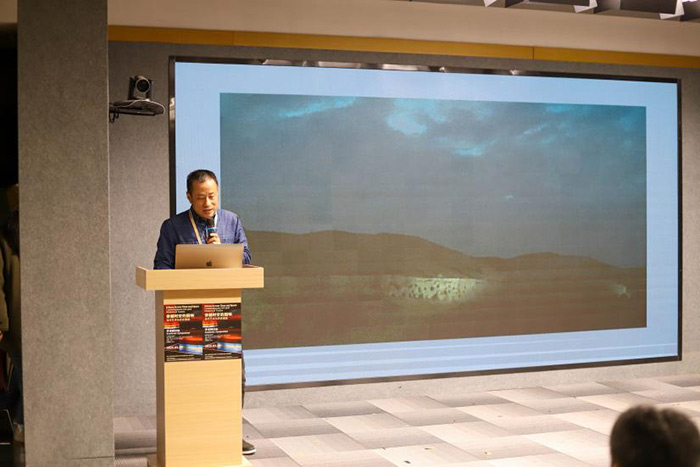 美国斯坦福大学教授谢晓泽以《想象、重构与创新:我的敦煌藏经洞计划》为题,系统梳理了其自2017年受美国敦煌基金会邀请进驻敦煌研究院以来的跨学科实践。他将藏经洞视为承载多维文明密码的“时空胶囊”,从佛教宇宙观的三界九地、曼荼罗几何到天文星象的隐喻中,提炼出这一历史场域的宇宙模型属性。通过毫米级三维扫描技术对壁画物质痕迹的精准捕捉,结合曼陀罗数学规律与书法笔势的数字化转译,既重构了佛教哲学中的空间秩序,又以动态光影技术模拟历史层积的消长过程。他提出“研究式创作”方法论:耗时三年研究敦煌藏经洞文献,发现唐代曼陀罗图像的立体形态可能性,进而通过建筑史、佛教仪轨与数学规律重构《坛城》系列装置。这种基于考古学实证与艺术想象的跨学科实践,为文化遗产的当代表达开辟了新维度。