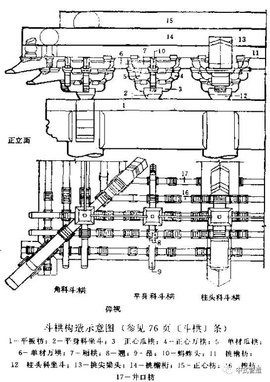 一斗二升交麻叶斗拱:清式大木作斗拱名称点用于廊子、亭子檐枋之上或宫殿、宫门脊枋之上。斗拱不出踩,主要起隔架和装饰作用。