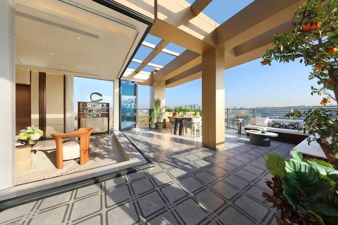 上叠更是将储藏空间拉满,奢侈地做了三个「800库」收纳系统,除了超大的阳台,三重露台全赠送,最大面积可达约110方,还有无边际泡池……